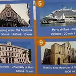 Bari központja 15 perces sétával érhető el a panziótól, továbbá olyan kulturális helyszínek, mint a Petruzzelli-színház, csupán 11 percnyi autóútra. A szállás 1 km-es távolságra fekszik a Bari vártól. A Bari székesegyház sétatávolságra található a Bari városi hoteltől. A Gl Sun Palace Panzió vendégei körülbelül 800 méterre megtalálják a Piazza Umberto buszmegállót.